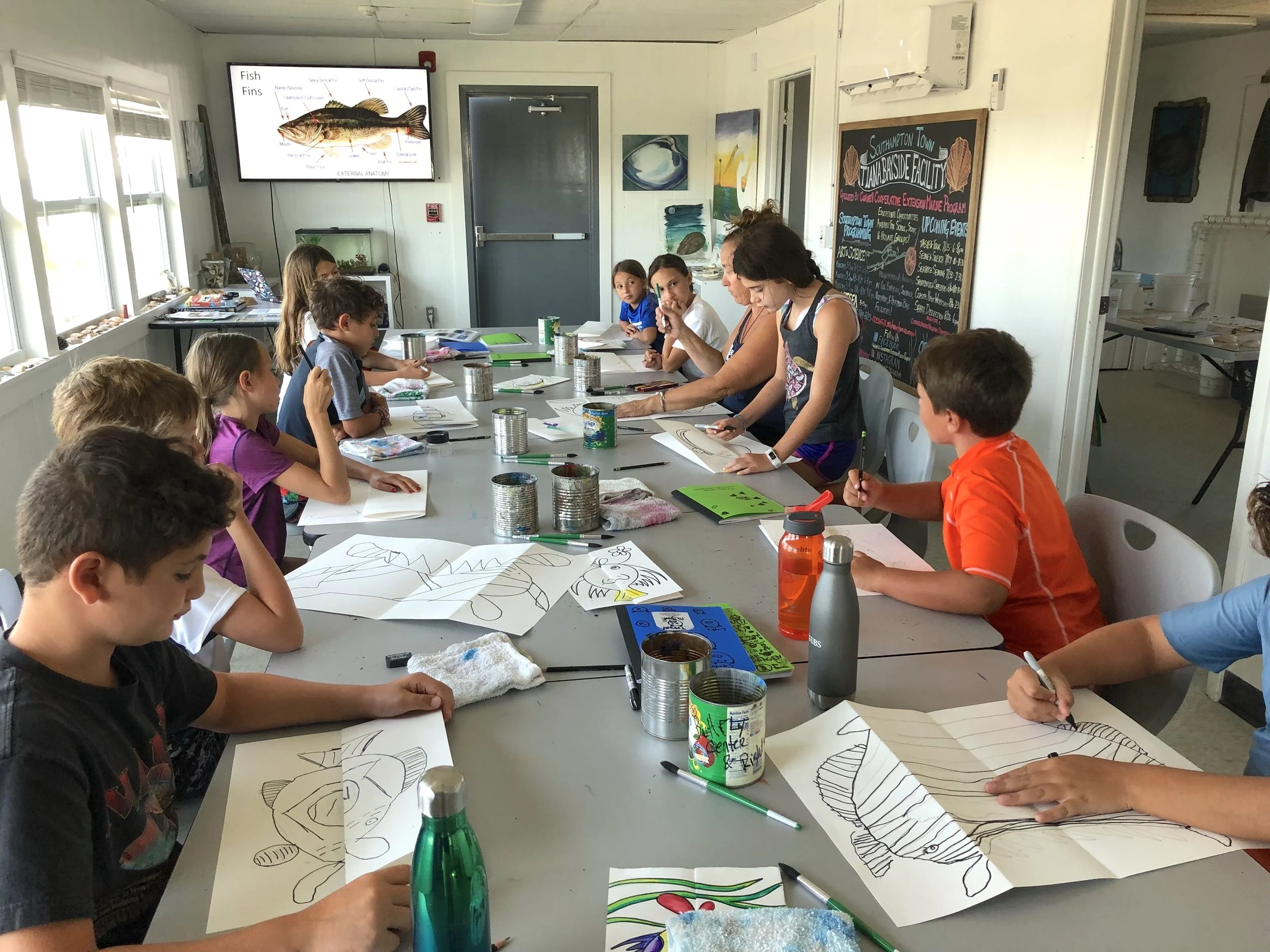 Cornell Cooperative Extension of Suffolk County (CCE) has partnered with the Town of Southampton to develop an outreach and education center at the Tiana Bayside Facility in Hampton Bays. This unique location coupled with CCE Marine Program’s experience with youth education create a learning environment like no other. The facility now hosts a multitude of seasonal programming focused on marine science coupled with STEAM Art + Education. Summer programs (small camps) include Bayside Adventures, ArtSea and Marine Art + Science Summer Program (mini camps). Additional seasonal programming includes explorations into the neighboring coastal and marine habitats including the salt marshes, seagrass meadows, mud flats and ocean beach. The facility also hosts a coastal plant nursery and shellfish grow out area to aid in local shoreline and shellfish restoration projects.